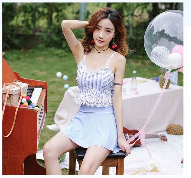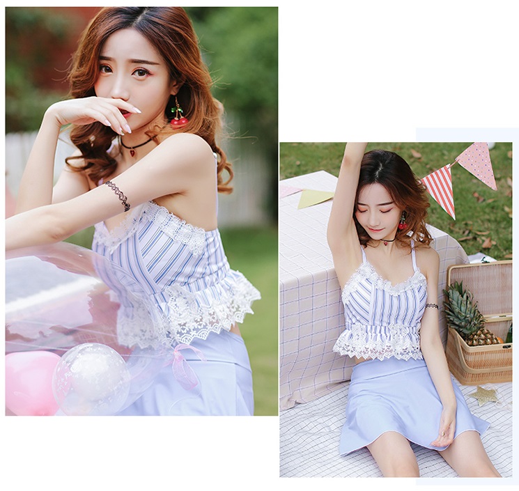 キャミソールタイプのトップスとフレアスカートがフェミニンな一着♪