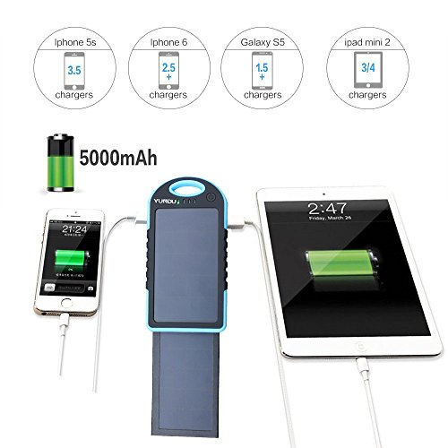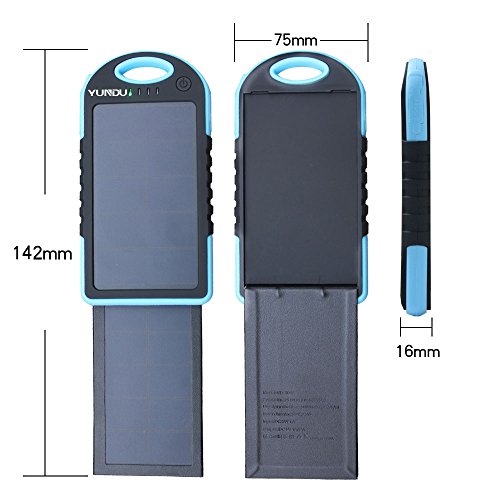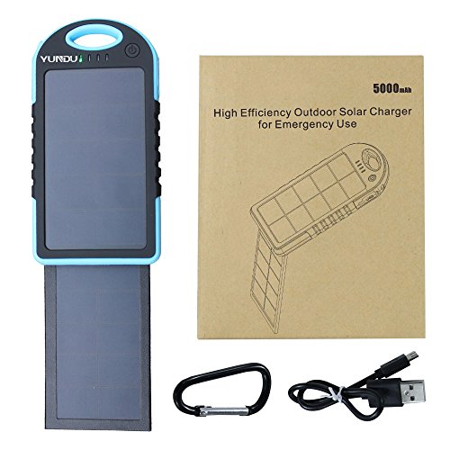 YUNDU Solar Charger 5000mah High Efficient Double Foldable 2.2 W Fast Charging Panel Rechargeable Battery for Apple Samsung Blackberry Tablet ( Blue)