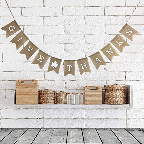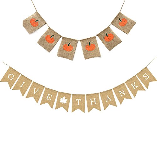 Studio : ZX-HOME Publisher : ZX-HOME Product Description Express your gratitude to your father, mother, lover or friends with this "GIVE THANKS" bunting banner. It is an easy way to show your feelings with high performance. Burlap material makes it reusable and durable. It's ideal for wedding, thanksgiving party decoration, etc. Features - Color: As shown in the picture. - Material: Burlap. - Length: "GIVE THANKS"banner 9.18feet,PUMPKIN banner 6.6feet - Size(each banner):" GIVE THANKS" banner Approx. 13 x 18cm/ 5.12 x 7.1 inch (LxW),Pumpkin Banner measures Approx.12 * 15cm/4.75.9 * 5.9in. - Burlap material won't break easily, durable and reusable. - It can really help create special and memorable moments for you and your friends, families. - Easy to hang them on the wall, over the window, doorway, above the table, along the hallway and on the tree, etc. -Good decoration for Thanksgiving Day party, home, office, shop, bar,etc. - Perfect as a photograph prop. Package Including 1 x 2.8M Give Thanks Burlap Garland Bunting Banner Happy Thanksgiving Day Party Home Decoration Wedding Party Decor 1x2M Pumpkin Thanksgiving day fall harvest banner 0