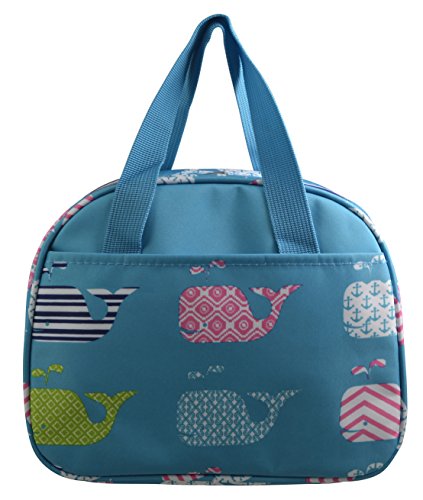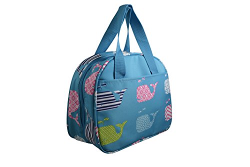 Womens' Teens' Insulated Lunch Bag Fashion Insulated Bag w/ Cute Elephant, Popsicle & Whale Print (Blue Whale)