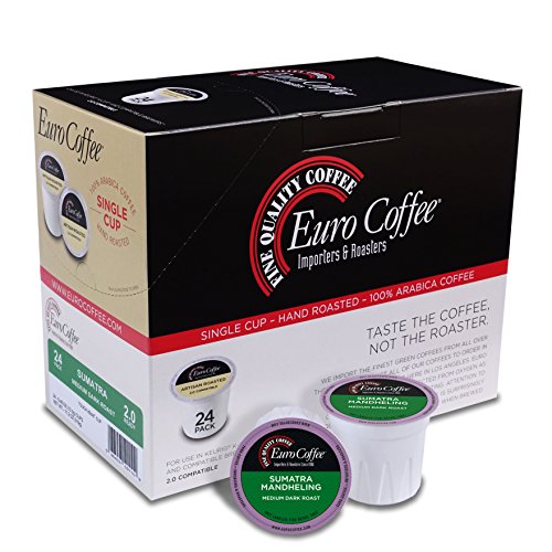 Euro Coffee® Sumatra Mandehling, 24 Count Single-Serve K-Cup® Keurig Compatible. Award Winning Artisan Coffee Roaster