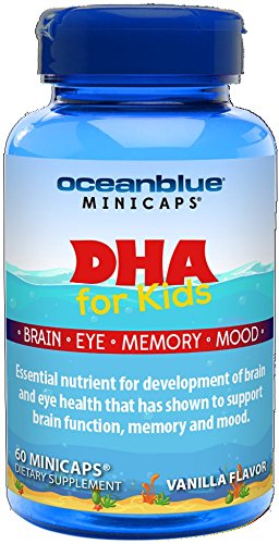 Ocean blue Omega-3 Minicaps with DHA for Kids are easy-to-swallow softgels, highly concentrated with 250 mg of DHA per softgel. Clinically proven and recommended by doctors, highly concentrated DHA is an essential supplement to improve memory, brain function and eye health during the developing years. Clinical studies have shown that children whose diets are supplemented with DHA develop fewer problems with their nervous system and fewer behavioral problems. Ocean blue Omega-3 Minicaps with DHA for Kids are perfect for children who have trouble swallowing large pills. These easy-to-swallow softgels are one-third the size of full softgels. Your child will experience better absorption of fish oil through bioavailability. Ocean blue Omega-3 Minicaps with DHA for Kids provides a nice, soothing vanilla flavor with no fishy aftertaste and burps. Sourced from wild-caught Alaskan fish, it is safe and free from mercury, purine, fillers, gluten, sugars and dyes.Feature