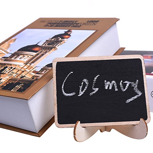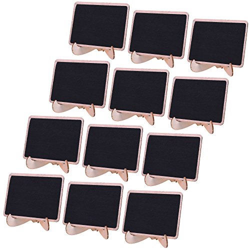 COSMOS Erasable Mini Wooden Chalkboard Sign Message Memo Board with Stand for Weddings, Food Signs, Party Supplies, Table Numbers and Event Decoration, 12 Pieces