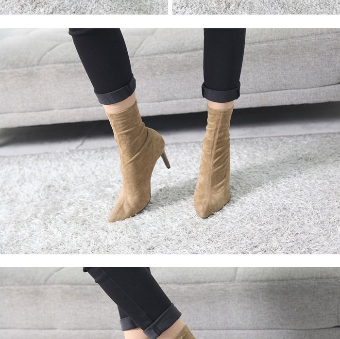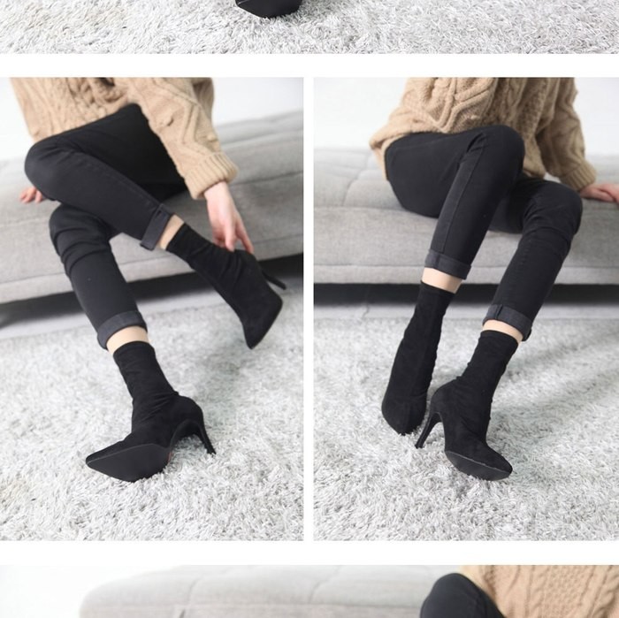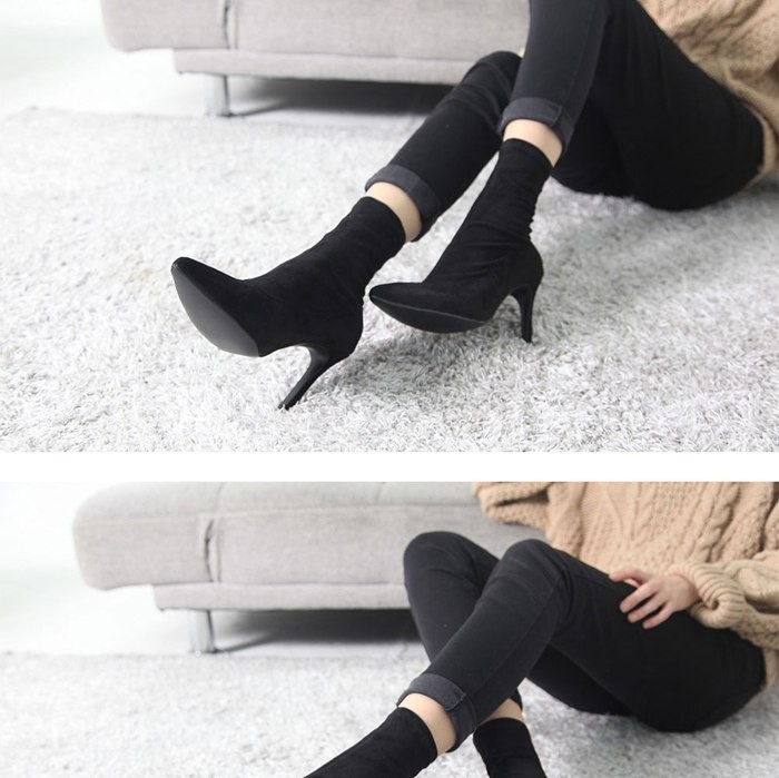 商品名:ストレッチブーツ レディース ピンヒール スエード調 ポインテッドトゥ 2017 秋冬 ファッション 靴 婦人靴