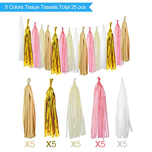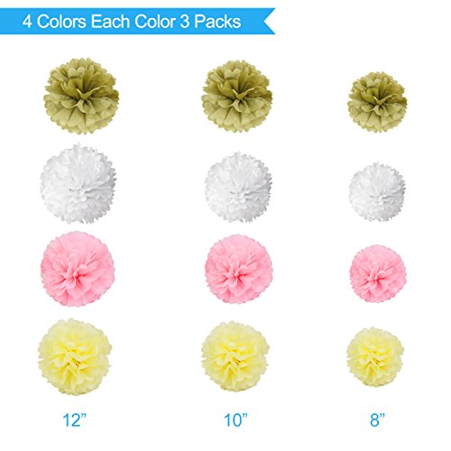 - PACKAGE CONTENT: Each package comes with 12 pcs paper Pom Poms , 25 pcs tissue tassels, 50pcs mixed color Party Balloons and 2 pcs circle paper garland . Excellent value for your money! You will not regret the choice of value!