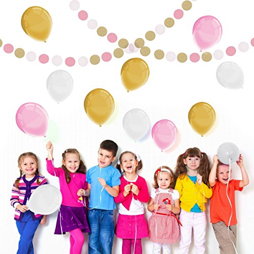 - 50 PACK PARTY BALLOONS:50 pack gold & pink & white color strong & long lasting latex balloons included,which are made from durable material.