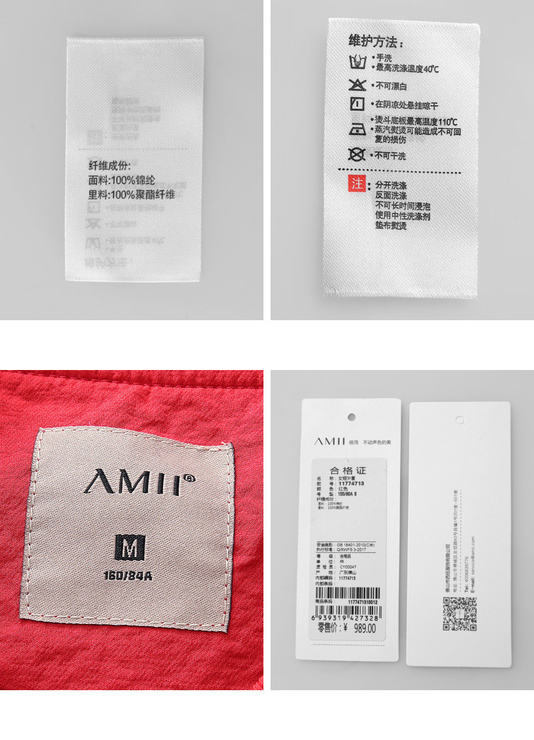 | 洗涤标准: | 40℃以下手洗110℃以下垫布熨烫不可漂白不可干洗不可浸泡悬挂晾干 |