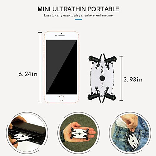 ?Specifications: ?Brand Name: JJR/C ?Item Name: H49 ?Built-in Gyro: 6 Axis Gyro ?Channel: 4CH ?Remote Control: WiFi Remote Control / 2.4G Grip Controller ?Functions: Sideward flight/Turn left/right,Up/down,Forward/backward/3D rollover/WIFI ?FPV/Gravity Sense Control/Headless Mode/Altitude Hold ?Control Distance: About 40m ?Battery: 3.7V 250mAh lipo battery ?Flying Time: 5 mins ?Charging Time: about 45mins ?Product size(unfolded): 10*6.3*0.95cm ?There might be some deviation due to manual measurement. ?Notice: ①The phone in the picture is not included. ②This RC model is not a toy and is not suitable for children under 14 years old. ③Carefully read the instruction before any use, if you are a beginner, it's advisable to be assisted by an experienced adult.