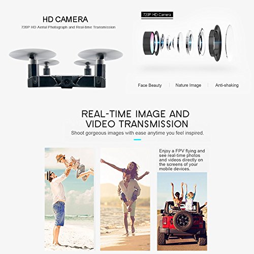 ?Features: ?The aerial photography mode can make your photos and videos more beautiful and amazing! ?With attractive headless mode, completely solving pilot loss-of-orientation problem. ?2.4G grip control with gravity gesture control. ?Wifi real-time transmission FPV system which can take photos and record videos for your great memory. ?One shot takeoff / one button landing, headless mode / one button return ?Automatic folding design, just press the two sides automatically to eject the arm ?Ultra slim body and remote control, easy to carry, bring more excellent flight experience