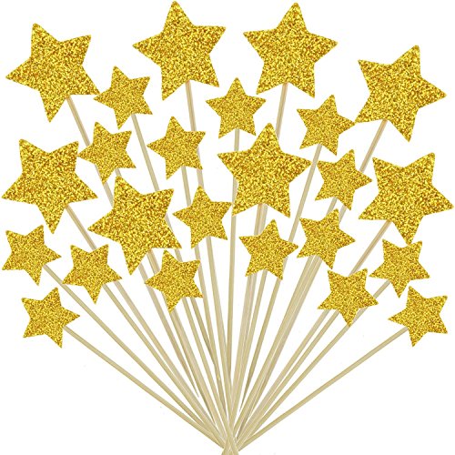 - Package includes 30 glitter gold star cupcake picks of two different sizes, 10 big star cupcake picks and 20 small star cupcake picks.