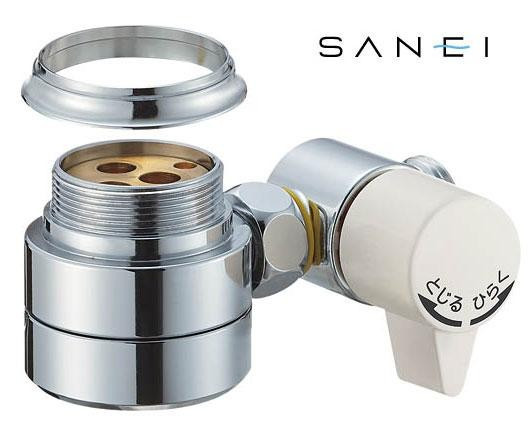 シングルレバー混合栓の上部と本体の間に使用することで、分岐することができます。