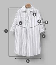 尺码 ①衣长 ②胸围 ③肩宽 ④下摆围 ⑤袖长 ⑥袖臂围 ⑦袖口围