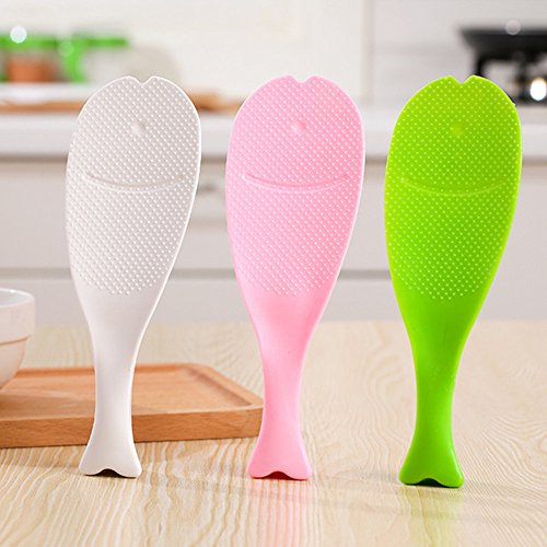The Plastic Standing Fish Rice Scoop Ladle Paddle Nonstick Kitchen Tool is a quite practical tool for daily use. It has a cute fish shaped design, with its tail stand capability for added convenience. With an uneven, textured surface, rice will not stick on it to reduce waste. Made of non-toxic plastic material, it resists high temperature and is absolutely safe. Such beautiful design will also add a good taste to your home decor. So, what are you waiting for? Click and order right now!