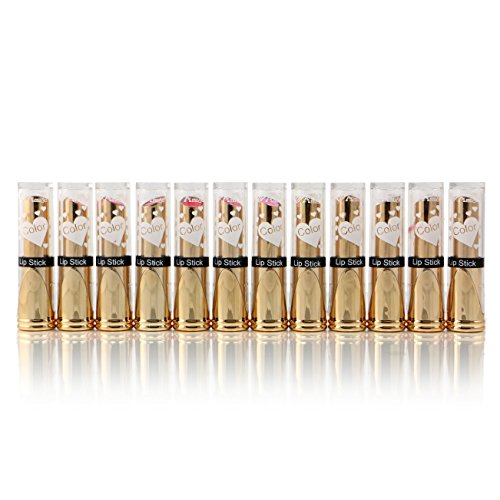 -. Title : 12pc Amuse Lipstick in Golden Tone Case set of 12 colors - pink - orange - and more #LIP7252
