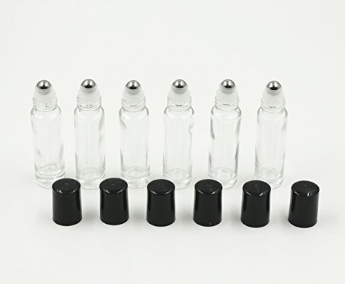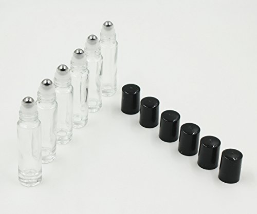 - Title : 6 Pack - Empty Roll on Clear Glass Bottles [STAINLESS STEEL ROLLER] 10ml Refillable Clear Roll On for Aromatherapy,Fragrance Essential Oil,Perfumes and Lip Balms - Metal Chrome Roller Ball