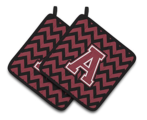 Caroline's Treasures Letter A Chevron Garnet & black Pair of Pot Holders CJ1052-APTHD, 7.5HX7.5W, Multicolor