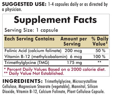 -. Title : TMG (Trimethylglycine) 175mg w/Folinic Acid & B12 - Hypoallergenic, 200 capsules