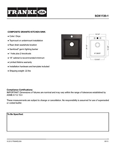 Franke Quantum 16.75" Dual Mount Granite Single Bowl Kitchen Sink, Onyx