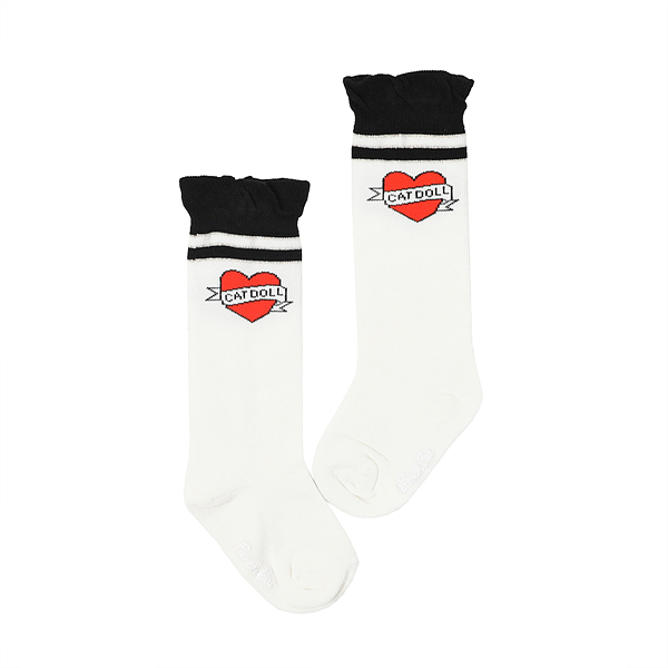 상품설명 오렌지 캣돌 하트 로고와 골드팁이 믹스된 NY ST, 입구의 프릴단이 귀여운 니삭스 입니다. 하나쯤 소장하고 있으면 귀여운 캐쥬얼 룩 분위기를 업시켜줄 아이템입니다.