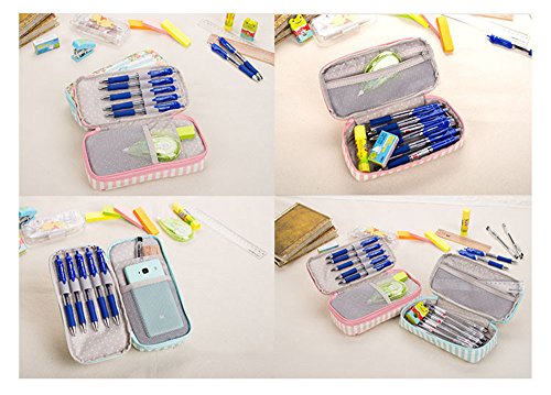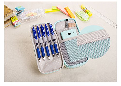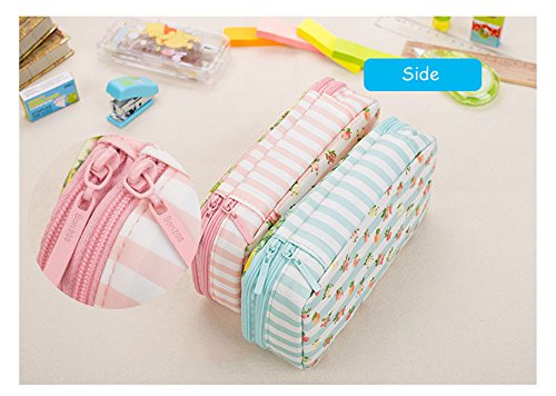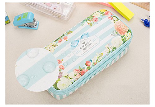 Korean Waterproof Large Capacity Romantic Floral Garden Double Layers Pencil Case Pen Holder Pouch Stationery School Supplies (Blue)