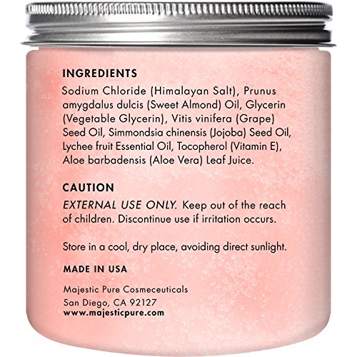 - Purchase with complete peace of mind, we are confident we have developed the absolute best Himalayan Lychee Pink Crystal Salt Exfoliator in the market. If you are not completely satisfied with Majestic Pure Himalayan Lychee Pink Crystal Salt Scrub, we will refund your entire purchase.