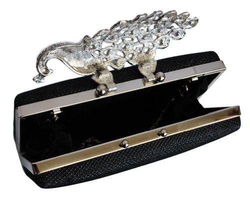 -. Brand : Chicastic -. Department : womens -. Feature : Cocktail Evening Bag / Detachable Chain Attached - 22 inches / Measures - L - 7", H - 4", W - 2" / **Official CHICASTIC product made and sold exclusively by Chicastic.** Products sold by other sellers may vary. Please check seller before checking out. -. Model : CHIC10043 -. ProductGroup : Shoes -. ProductTypeName : HANDBAG -. Title : Chicastic Mesh Rhinestone Peacock Hard Box Wedding Cocktail Clutch Purse