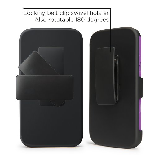 Includes 2 pieces - a hard back case that slides into a locking belt clip swivel holster