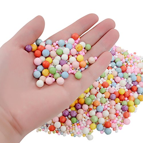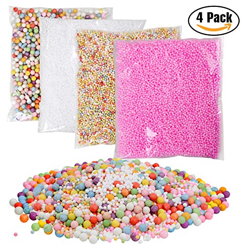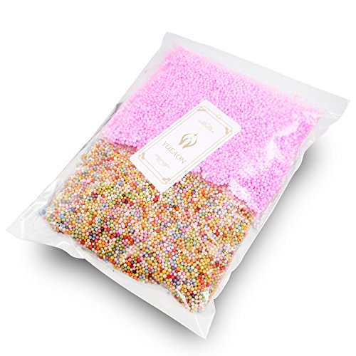YUEAON 4 pack floam beads slime supplies (45000+1500)pcs 0.08-0.32 inch (2-4-9mm) styrofoam foam beads balls for kids crafts-small+big-colorful-rainbow,white,pink