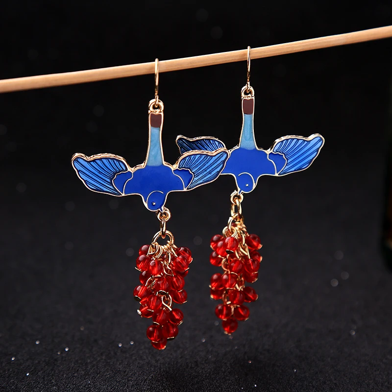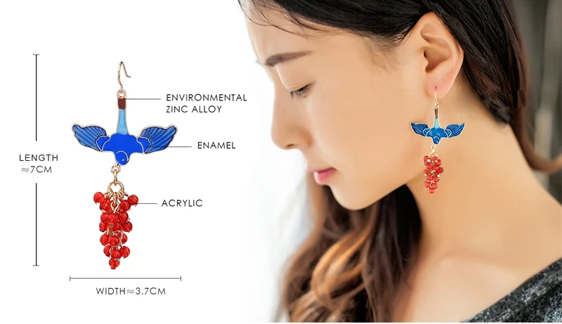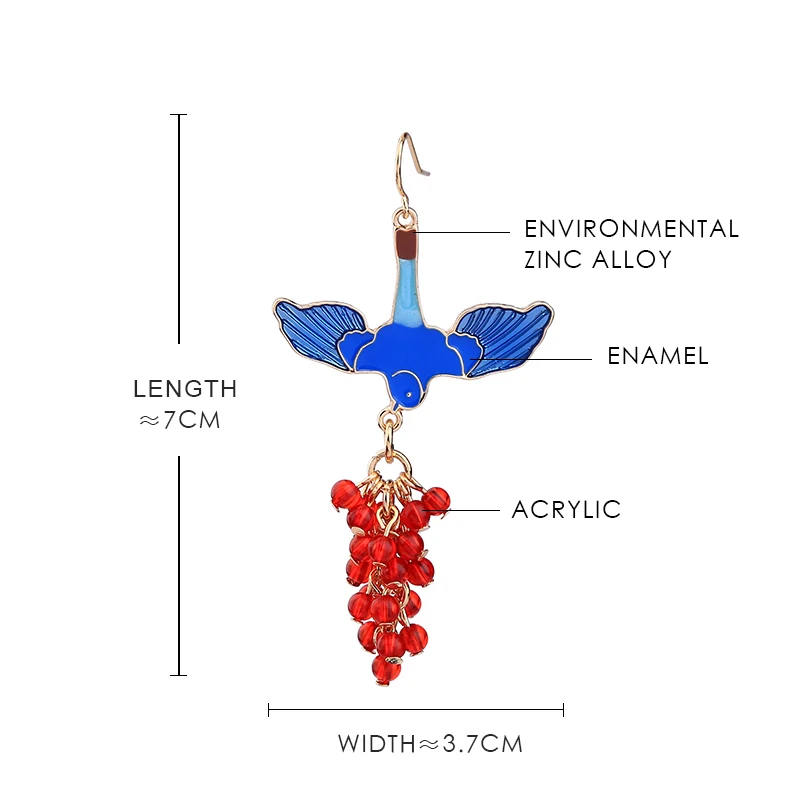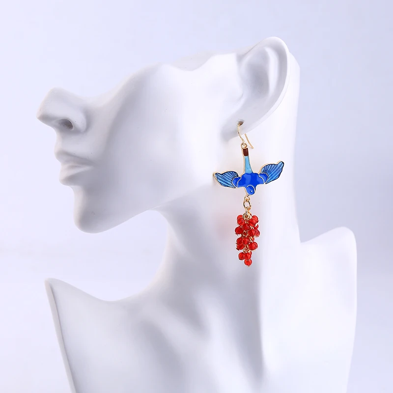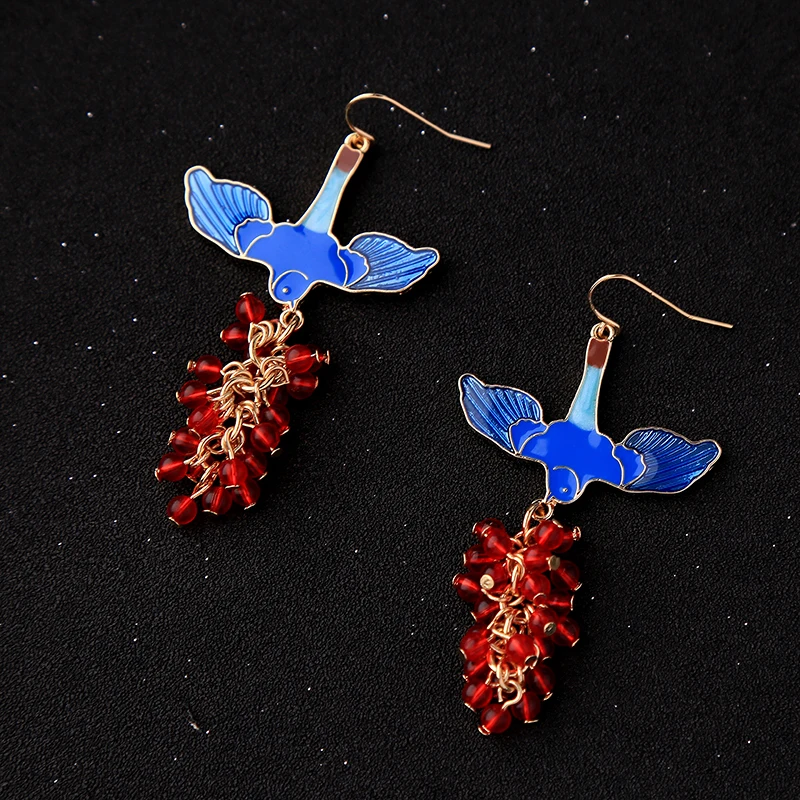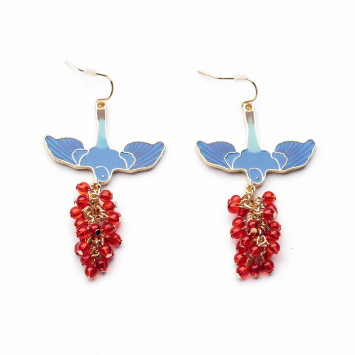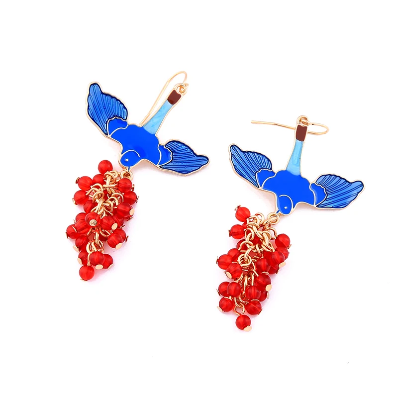 Production name ::Candy Blue Enamel Brid Red Beaded Drop Earrings for Women