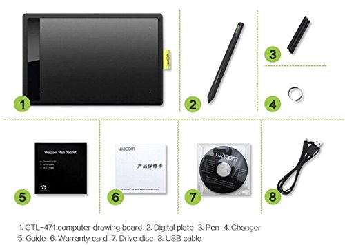 Includes One pen tablet and pen, Replacement nibs, USB cable, Driver disk, Quick start guide, Warranty card