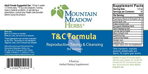 Studio : Mountain Meadow Herbs Publisher : Mountain Meadow Herbs Binding : Health and Beauty Product Description TC Formula is the answer to your search for natural support of healthy menstruation and ovulation. The potent herbs in this readily assimilated blend work quickly! You will find these herbs have traditionally been used to support a healthy female reproductive system. May relieve mild pain associated with menstruation and/or ovulation. An exceptional formula for your reproductive health! Optimal results have been noted by alternating (every two weeks) the TC Formula with the HB Formula for maximum cleansing and balancing effects. 0