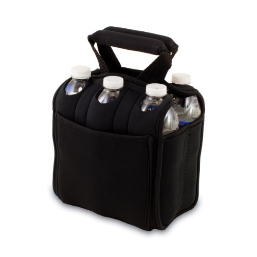 This Picnic Time Six Pack insulated beverage tote features a durable Neoprene construction with comfy handles that allow you to carry and insulate your beverages while on the go. Easy to tote, this carrier conveniently holds standard water, beer, and soda bottles and cans. A handy side pocket houses small personal items such as keys or cell phone. The Neoprene insulates and protects your bottles and cans, while making it easy to carry a six pack of anything, anywhere.Feature