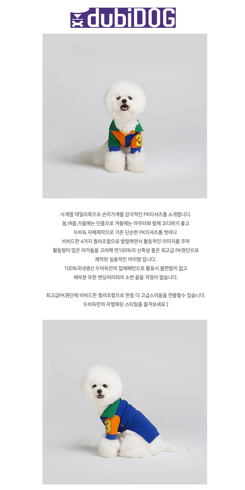 | 사계절 데일리룩으로 손이가게될 감각적인 PK티셔츠를 소개합니다. 봄,여름,가을에는 단품으로 겨울에는 아우터와 함께 코디하기 좋고 두비독 자체제작으로 기존 단순한 PK티셔츠를 벗어나 비비드한 4가지 컬러조합으로 발랄하면서 활동적인 이미지를 주며 활동량이 많은 아가들을 고려해 면100%의 신축성 좋은 최고급 PK원단으로 제작된 실용적인 아이템 입니다. 100%국내생산 두비독만의 입체패턴으로 활동시 불편함이 없고 배부분 또한 밴딩처리되어 소변 뭍을 걱정이 없습니다. 최고급PK원단에 비비드한 컬러조합으로 한층 더 고급스러움을 연출할수 있습니다. 두비독만의 차별화된 스타일을 즐겨보세요:) |