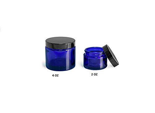 Blue 4 oz Glass Jar Black Lid - Pack of 12