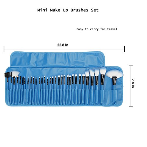 32 Pieces makeup brushes travel set with gorgeous brush pouch, easy to put into your purse, perfect for travel or carry-on. No shed. Lifetime free replacement or refund for fall-apart guarantee!