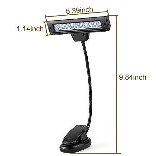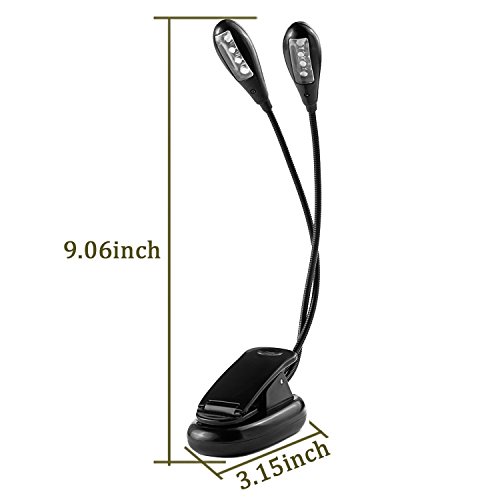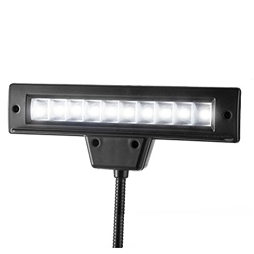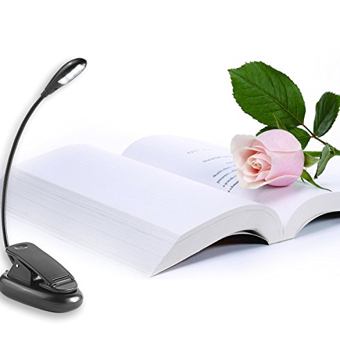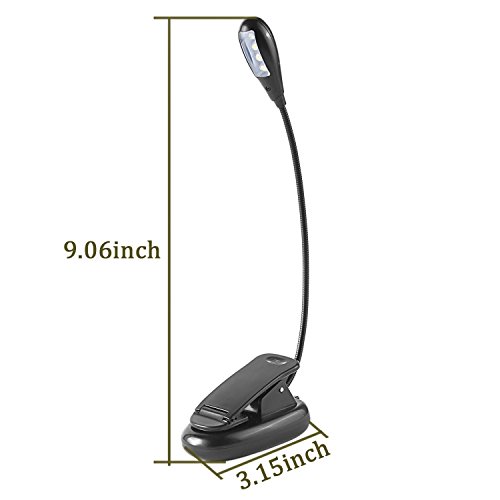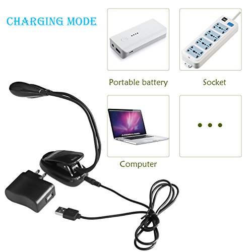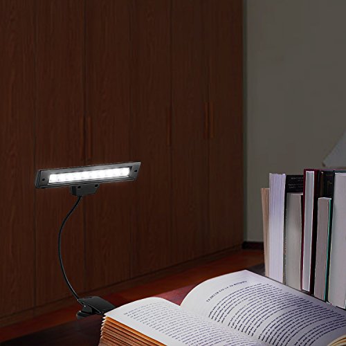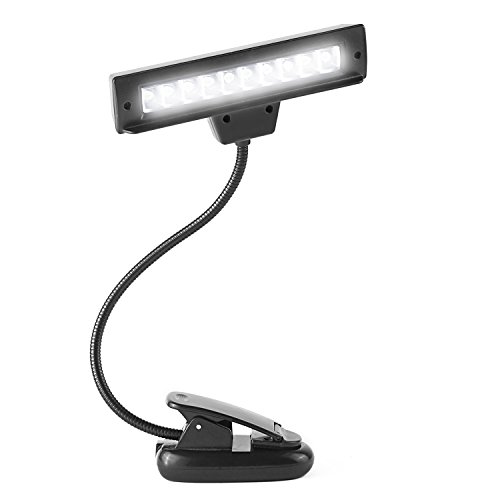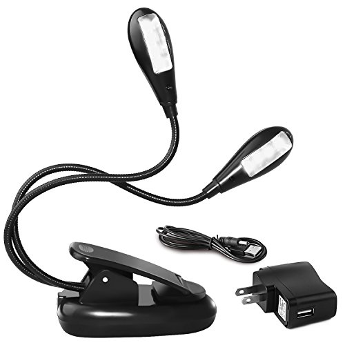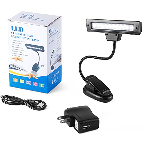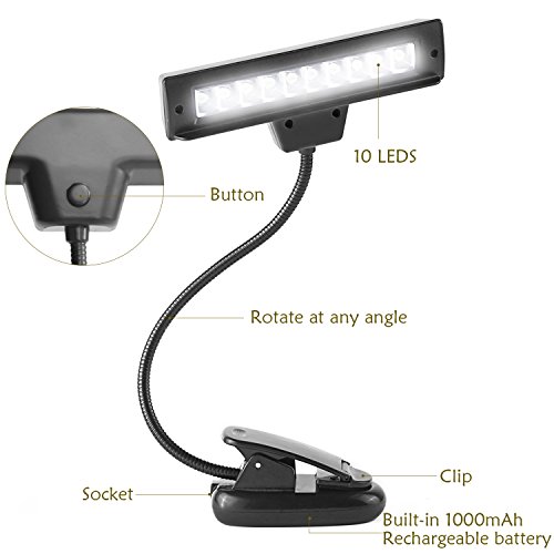 Reading Light Rechargeable, PEMOTech 10 LED Book Light, Music Stand Light Clip On, Flexible Gooseneck Keyboard Light, Portable Travel Light, Bed Reading Light Included AC Adaptor and USB Cable