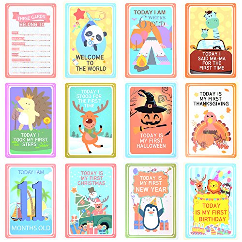 Studio : Suvybaby Publisher : Suvybaby Binding : Baby Product Product Description The NEW #1 baby gift! - 36 Illustrated Milestone Cards - Capture your baby's first year in weeks, months and big events! 1. WELCOME TO THE WORLD 2. TODAY I AM 1 WEEK OLD 3. TODAY I AM 2 WEEK OLD 4. TODAY I AM 4 WEEK OLD 5. TODAY I AM 6 WEEK OLD 6. TODAY I AM 8 WEEK OLD 7. TODAY I AM 10 WEEK OLD 8. TODAY I AM 12 WEEK OLD 9. TODAY I SMILED FOR THE FIRST TIME 10. TODAY I CLAPPED FOR THE FIRST TIME 11. TODAY I ROLLED OVER FOR THE FIRST TIME 12. TODAY I CRAWLED FOR THE FIRST TIME 13. TODAY I SAT UP FOR THE FIRST TIME 14. TODAY I STOOD FOR THE FIRST TIME 15. TODAY I TOOK MY FIRST STEPS 16. TODAY I TASTED SOLIDS FOR THE FIRST TIME 17. TODAY I SAID MA-MA FOR THE FIRST TIME 18. TODAY I SAID DA-DA FOR THE FIRST TIME 19. TODAY I GOT MY FIRST HAIRCUT 20. TODAY I SLEPT THROUGH THE NIGHT FOR THE FIRST TIME 21. TODAY MY FIRST TOOTH CAME THROUGH 22. TODAY I AM 3 MONTHS OLD 23. TODAY I AM 4 MONTHS OLD 24. TODAY I AM 5 MONTHS OLD 25. TODAY I AM 6 MONTHS OLD 26. TODAY I AM 7 MONTHS OLD 27. TODAY I AM 8 MONTHS OLD 28. TODAY I AM 9 MONTHS OLD 29. TODAY I AM 10 MONTHS OLD 30. TODAY I AM 11 MONTHS OLD 31. TODAY IS MY FIRST EASTER 32. TODAY IS MY FIRST HALLOWEEN 33. TODAY IS MY FIRST THANKSGIVING 34. TODAY IS MY FIRST CHRISTMAS 35. TODAY IS MY FIRST NEW YEAR 36. TODAY IS MY FIRST BIRTHDAY