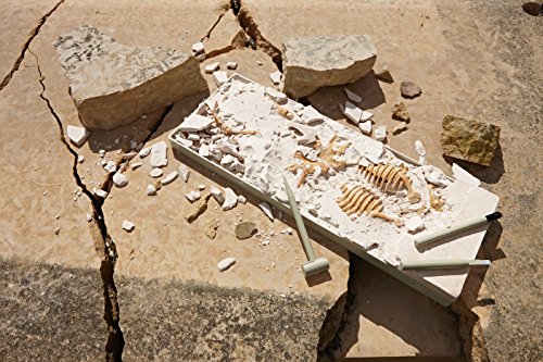 Bring home the mystery and excitement of a paleontological dig! Use the heavy-duty tools to carefully extract a dinosaur skeleton that is buried in plaster. Once the excavation is complete, the hard plastic bones can be washed and assembled to form a complete dinosaur model.