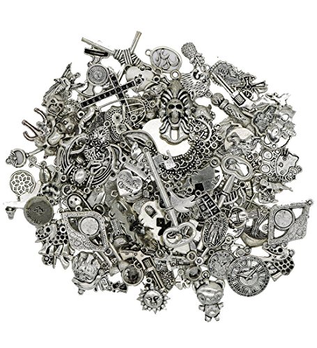Wholesale Jewelry Making Silver Charms - EyreLife Bulk Tibetan Silver Mix Pendants, Charms, Buttons, Beads, Spacers and Jewelry Findings for Jewelry Making Bracelets, Necklaces (100Pcs, Assorted)