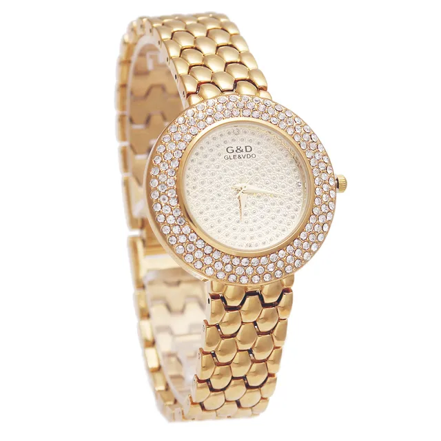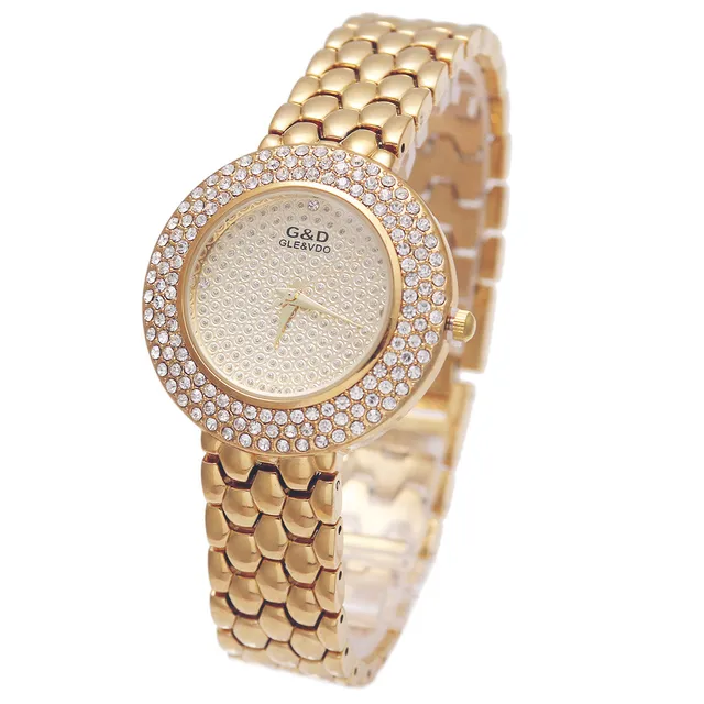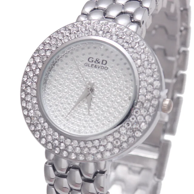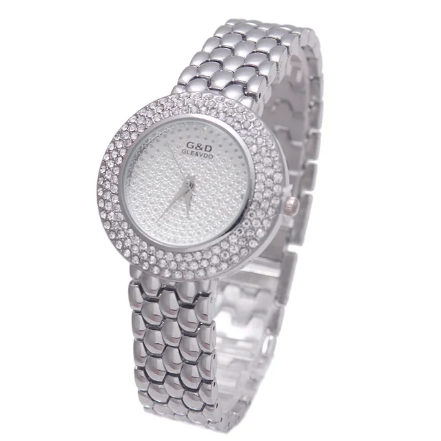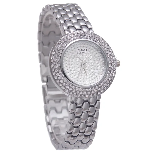2017 새로운 브랜드 G & D 고급 여성의 석영 손목 시계 스테인레스 스틸 Relojes Mujer 패션 실버 여자의 팔찌 시계 크리스탈