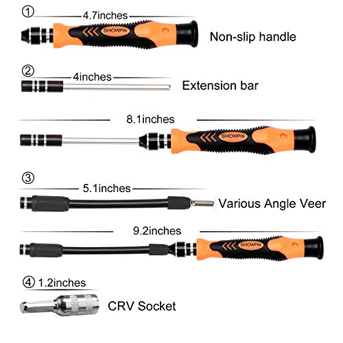 Showpin 45in1 Mini Precision Screwdriver Set with case with Tweezer Handle and Torx Hex Bits