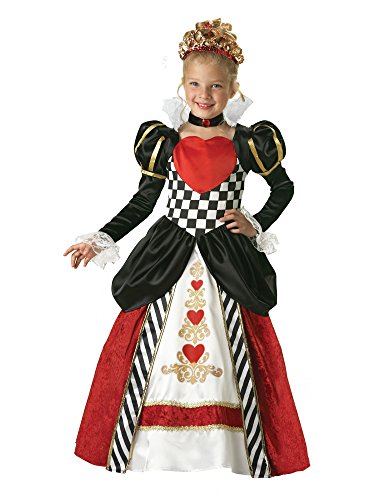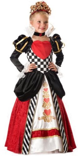 7017-12 Size: 12 Features: -Queen of Hearts Costume.-Full length gown with printed heart details and gold trim.-Tulle petticoat, velvet jeweled choker and sequined heart tiara.-Child sizes.-Size 4: Waist 21 - 21.5 and height 39 - 41.-Size 6: Waist 22 - 22.5 and height 45 - 46.-Size 8: Waist 23 - 23.5 and height 52 - 53.-Size 10: Waist 24 - 25 and height 54 - 55.-Size 12: Waist 25 - 26 and height 56 - 58. Options: -Available in five sizes.Feature