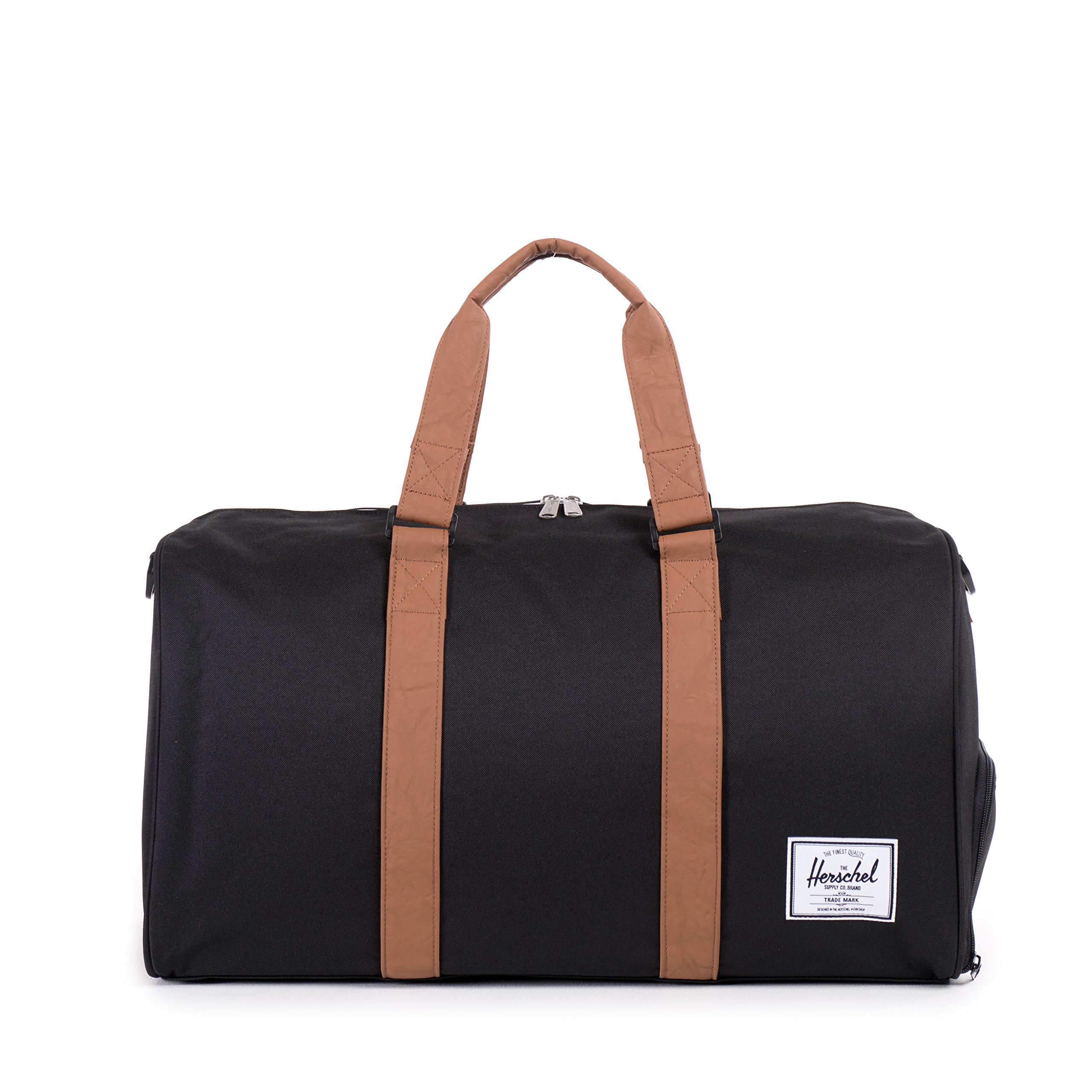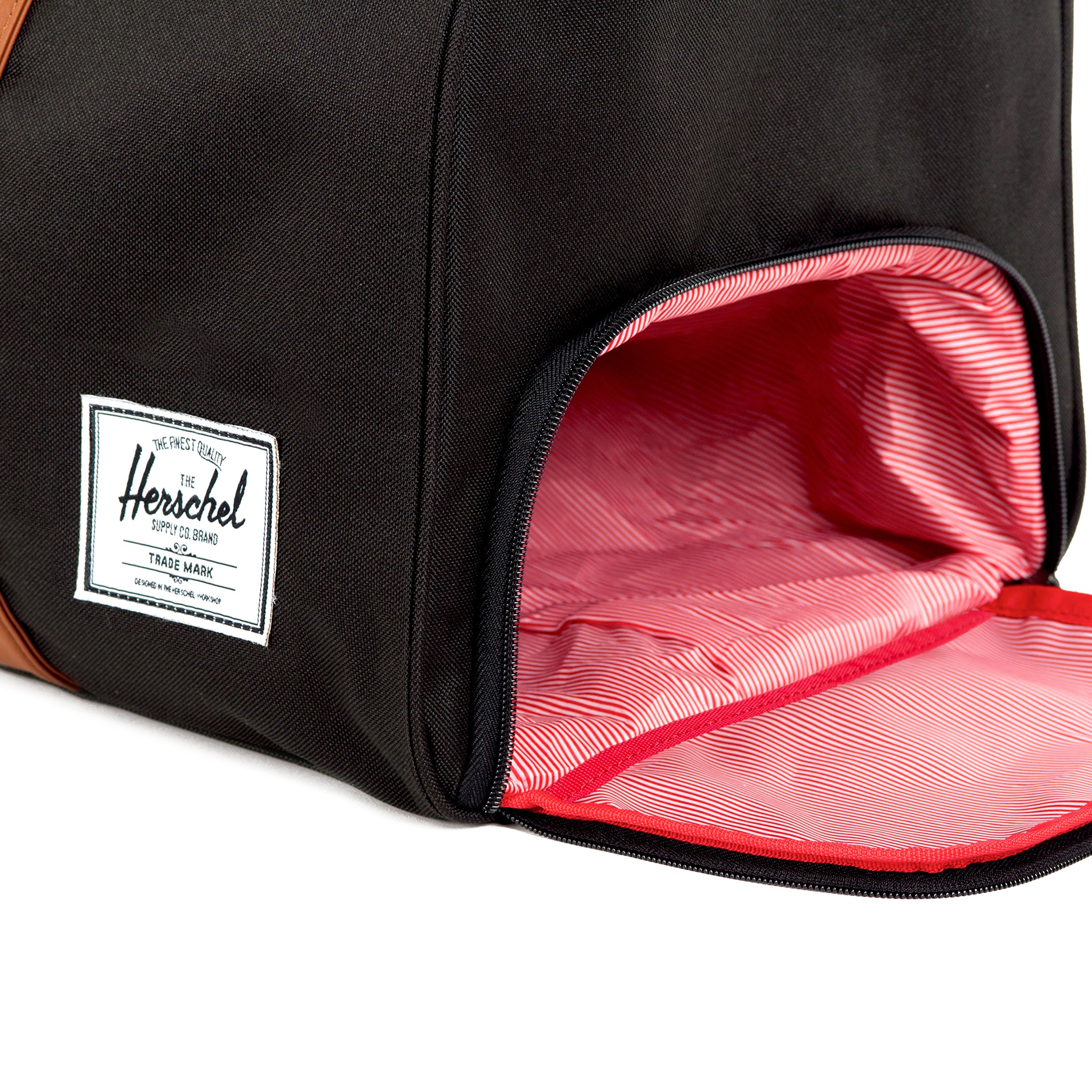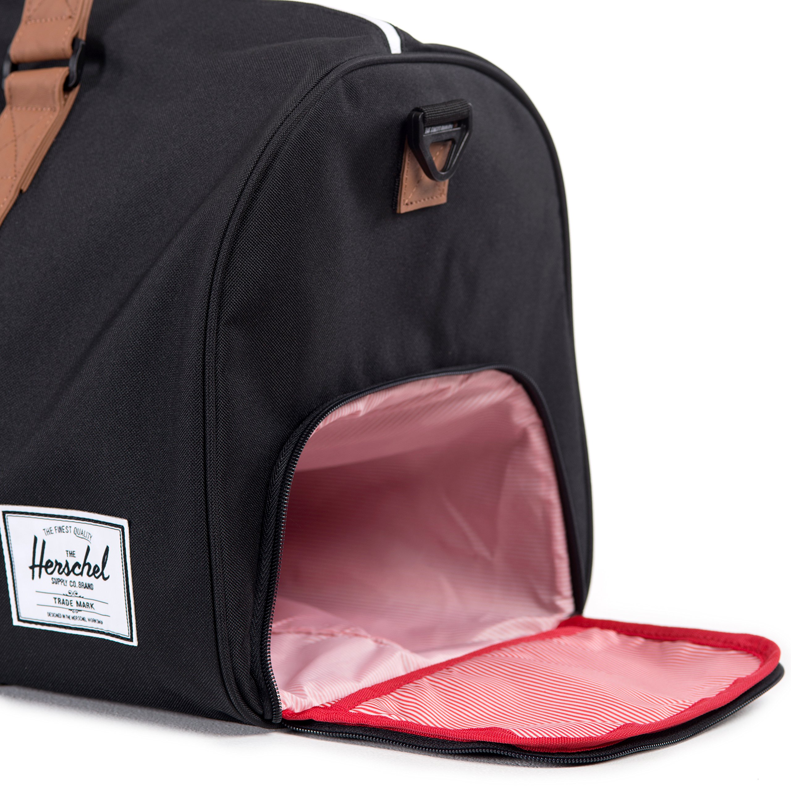Boston bag combining functionality and utility, such as plenty of storage capacity and pockets to divide shoes.