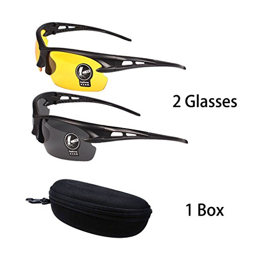 -. Title : 2 Pairs Unisex Sunglasses Anti Glare Non-Polarized Stylish Day and Night Vision Glasses best for Men Women Driving Cycling Shooting Hunting Outdoor Sports Protection