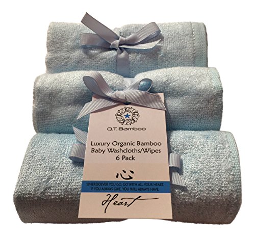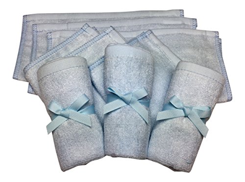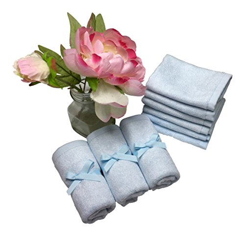 Bamboo Washcloths Face Towels for Sensitive Skin Great for Baby or Adult 6 Pack (Blue)