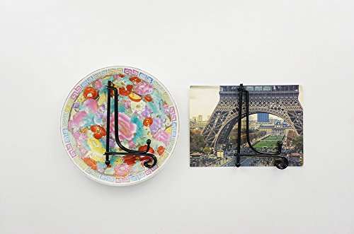 - Curved metal stand to display photos, books, small artwork, collector plates & more!