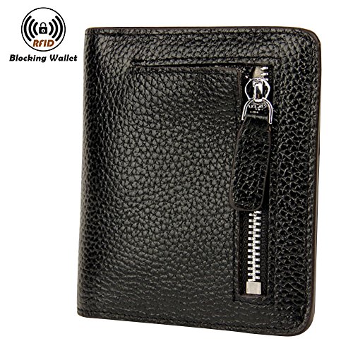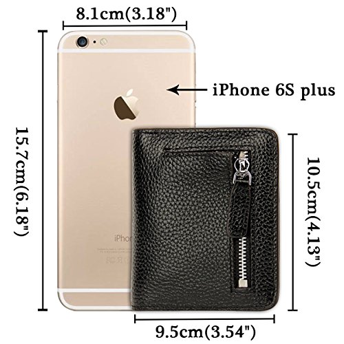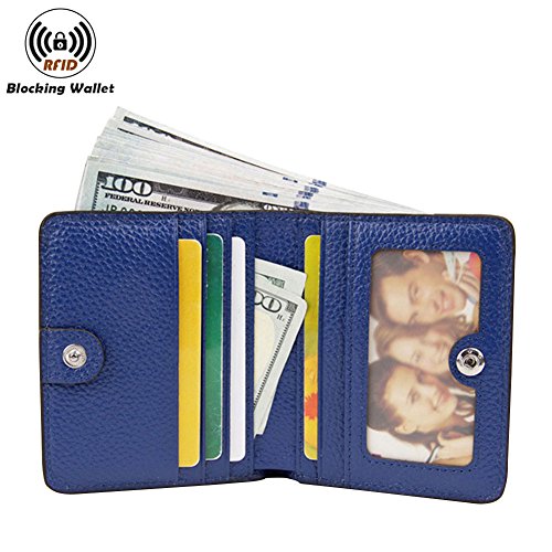 -. Feature : Material: Top grain soft cowhide(Genuine Leather), Snap Closure / Capacity: 6 card holder; 1 photo slot; 1 coin pocket; 1 bill section. / Dimensions: 3.54"L x 0.59"W x 4.13"H . Weigh: 0.13 pounds; Compact yet small enough to put into your coat pocket / Safety: Block RFID Readers From Scanning Your Credit Cards, Debit Cards, Banking Information, Smart Cards, RFID Driver's Licenses and Other RFID Cards. The RFID block signals ranging from 13.56MHz and above, But dooes not Block 125 KHz and below. / QUALITY GUARANTEE: If You're Not 100% SATISFIED with the Products For Any reasons, Please Contact us Right Now and Our Customer Service Team Will Make Things Right: FULL REFUND OR A FREE REPLACEMENT