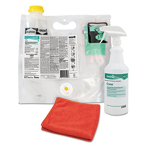 Diversey Crew Smart Mix Pro Floor & Surface Non-Acid Disinfectant Cleaner Starter Kit - Includes 2 Smart Pouches = 8 x 1 Quart Bottles, 1 Empty Spray Bottle & Trigger, 1 Cloth, 2 Empty Bottle Labels