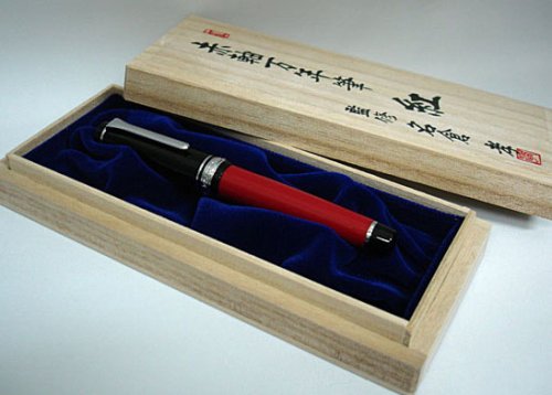 On the back side of the cap is a case to store the name "Kure" and store the fountain pen in a paulownia box and asked the calligrapher with a brushlet for naming.