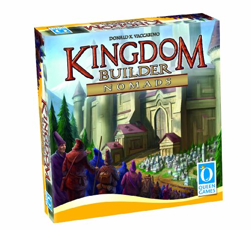 The first expansion for the award winning game Kingdom Builder, designed by Donald X. Vaccarino. Nomads now roam the Kingdom, making their special skills available to whoever comes to visit them. Nomads includes the game components for a 5th player. Four new landscapes with interesting locations allow for even more variation during set-up, and new Kingdom Builder cards give players the chance to earn gold during the course of the game, providing a new level of interaction. Only playable with the Kingdom Builder basic game. Can be combined with expansion 2 (Crossroads) and 3 (Marshlands).Feature